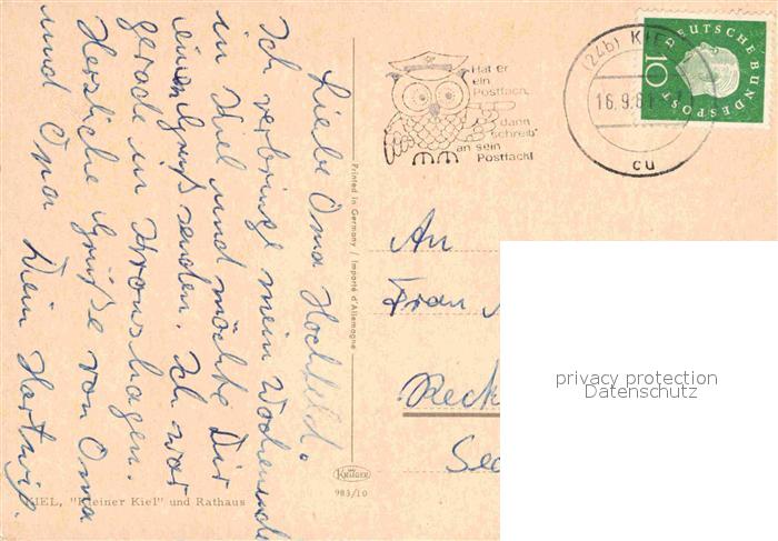 72867329 alte Postkarte KIEL CITY Rathaus postalisch gelaufen Erhaltung siehe scans [NatalD47] KatCode: 11110001002000