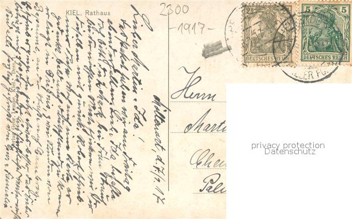 73689968 KIEL CITY Rathaus postalisch gelaufen Erhaltung siehe scans [WerneD78] alte Postkarte Wern Katcode 11110001002000