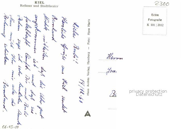 72915492 KIEL CITY Rathaus und Stadttheater postalisch nicht gelaufen Erhaltung siehe scans [WerneD78] KatCode: 11110001002000