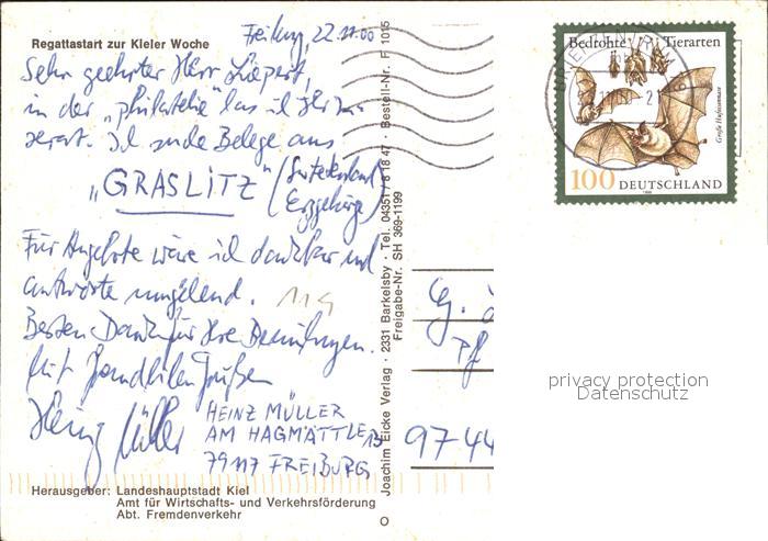 72177821 alte Postkarte KIEL CITY Regattastart zu Kieler Woche postalisch gelaufen Erhaltung siehe scans KatCode: 11110001002000