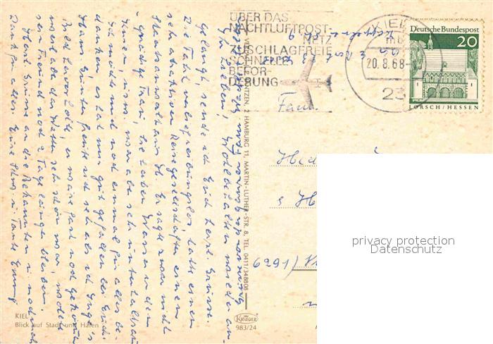 72895356 alte Postkarte KIEL CITY Stadt Hafen postalisch gelaufen Erhaltung siehe scans [KathaD81] KatCode: 11110001002000