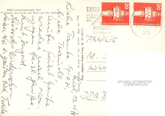 73776851 KIEL CITY Stadt und Foerde mit Blick auf die Ostsee Fliegeraufnahme postalisch gelaufen Erhaltung siehe scans [WerneD78] alte Postkarte Wern Katcode 11110001002000