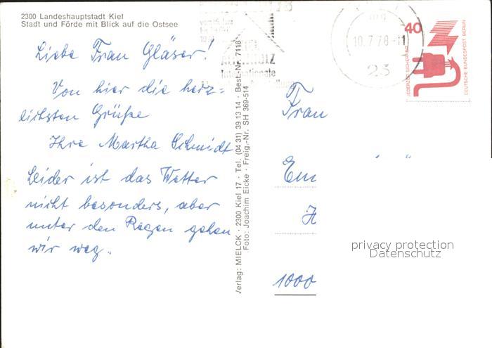 72354770 alte Postkarte KIEL CITY Stadt und Foerde mit Ostsee Fliegeraufnahme postalisch gelaufen Erhaltung siehe scans KatCode: 11110001002000