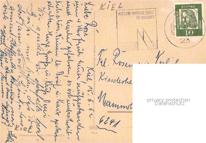 72885990 alte Postkarte KIEL CITY Stadtpanorama postalisch gelaufen Erhaltung siehe scans [FriedD77] KatCode: 11110001002000