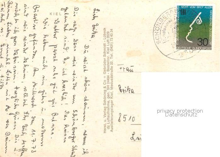 73204141 alte Postkarte Kiel Fliegeraufnahme postalisch gelaufen Erhaltung siehe scans [NatalD47] KatCode: 11110001002000