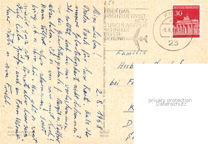 73322061 alte Postkarte Kiel Fliegeraufnahme Holtenauer Schleusen postalisch gelaufen Erhaltung siehe scans [KathaD81] KatCode: 11110001002000