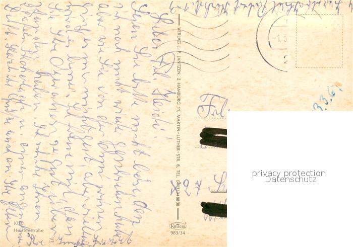 73617582 alte Postkarte Kiel Holstenstrasse postalisch gelaufen Erhaltung siehe scans [WerneD78] KatCode: 11110001002000