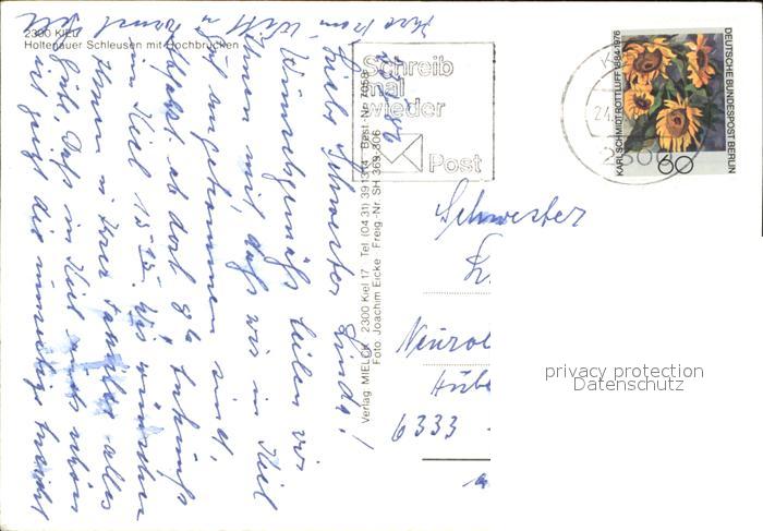 alte Postkarte Kiel Holtenauer Schleusen mit Hochbruecken Fliegeraufnahme postalisch gelaufen Erhaltung siehe scans