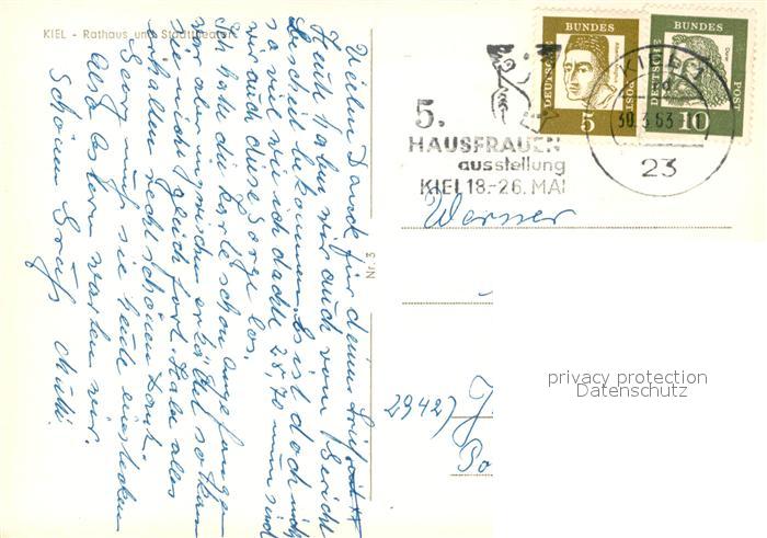 73297680 alte Postkarte Kiel Rathaus Stadttheater postalisch gelaufen Erhaltung siehe scans [PaolaD17] KatCode: 11110001002000