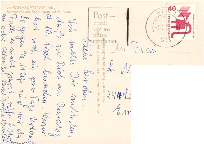 73904514 alte Postkarte Kiel Schwentine und Segelregatta auf der Foerde Fliegeraufnahme postalisch gelaufen Erhaltung siehe scans [WerneD78] KatCode: 11110001002000
