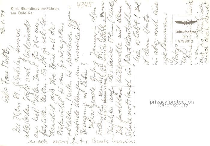 73540900 alte Postkarte Kiel Skandinavien Faehren am Oslo Kai Fliegeraufnahme postalisch gelaufen Erhaltung siehe scans [WerneD78] KatCode: 11110001002000
