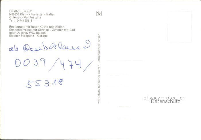 Kiens Suedtirol Gasthof Post postalisch nicht gelaufen Erhaltung siehe scans