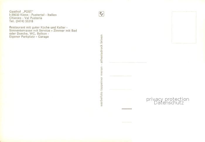 Kiens Suedtirol Gasthof Post Gastraeume Terrasse postalisch nicht gelaufen Erhaltung siehe scans [WerneD78]