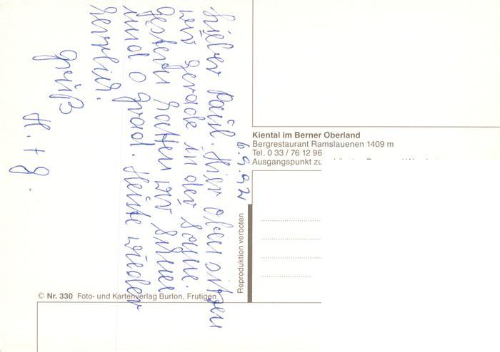 13916924 Kiental BE Bergrestaurant Ramslauenen Terrasse postalisch nicht gelaufen Erhaltung siehe scans [WerneD78] KatCode: 11470060170228