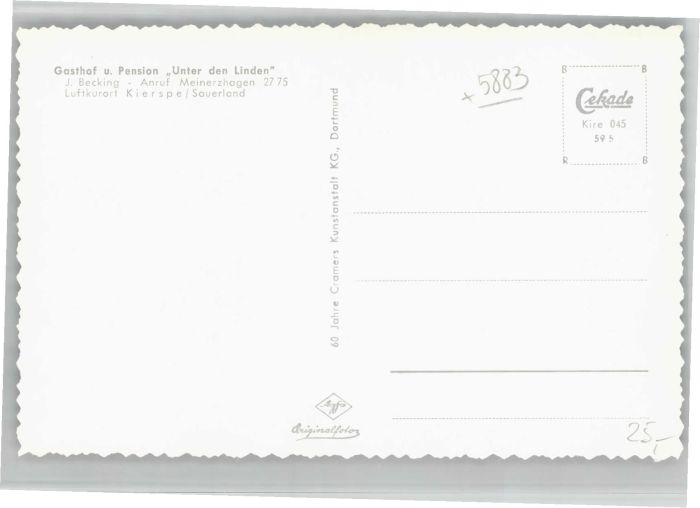 40683100 Kierspe Gasthof Pension Unter den Linden KatCode 11110005962028