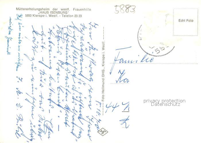 73701556 alte Postkarte Kierspe Muettererholungsheim Haus Isenburg Innenansicht postalisch gelaufen Erhaltung siehe scans [LiesaD40] KatCode: 11110005962028