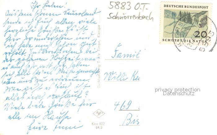 73700204 alte Postkarte Kierspe Schnoerrenbach postalisch gelaufen Erhaltung siehe scans [LiesaD40] KatCode: 11110005962028