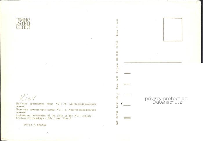 Kiev Kiew Architectural monument Krestovozdvizhenskaya Church XVII century postalisch nicht gelaufen Erhaltung siehe scans