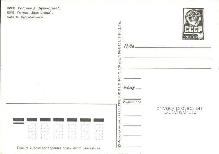 Kiev Kiew Hotel Bratislawa postalisch nicht gelaufen Ganzsache (eingedruckte Briefmarke) Erhaltung siehe scans [NatalD47 kt111box]