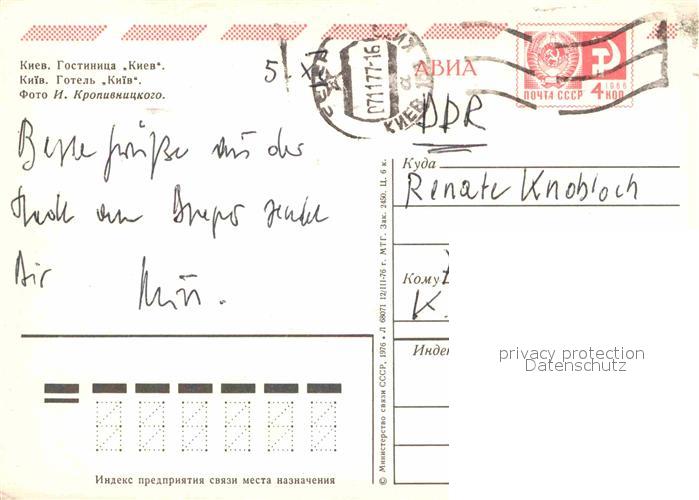 old postcard Kiev Kiew Hotel Kiev postalisch gelaufen Ganzsache (eingedruckte Briefmarke) Erhaltung siehe scans [NatalD47]