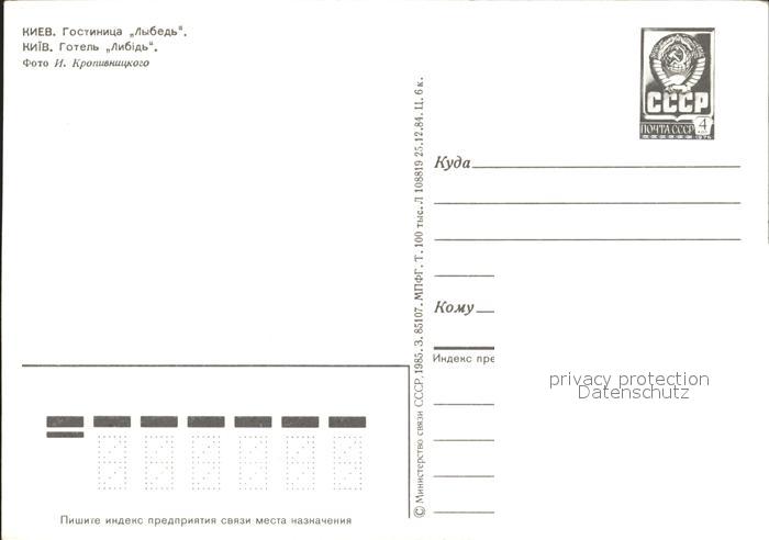 Kiev Kiew Hotel Lebed postalisch nicht gelaufen Ganzsache (eingedruckte Briefmarke) Erhaltung siehe scans