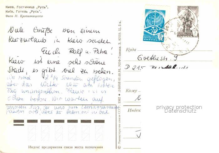 old postcard Kiev Kiew Hotel Rus postalisch gelaufen Ganzsache (eingedruckte Briefmarke) Erhaltung siehe scans [NatalD47]