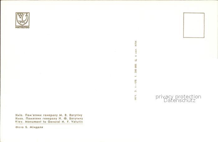 Kiev Kiew Monument General N. F. Vatutin postalisch nicht gelaufen Erhaltung siehe scans