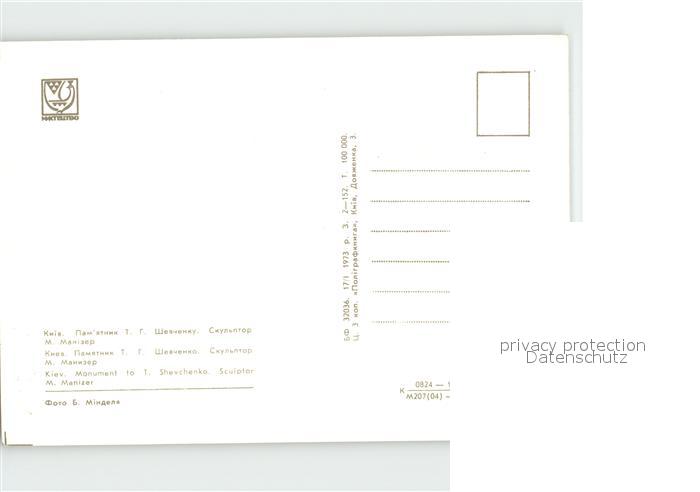 Kiev Kiew Monument Shevchenko postalisch nicht gelaufen Erhaltung siehe scans