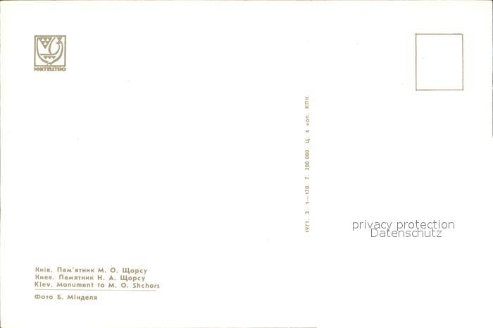 Kiev Kiew Monument to M. O. Shchors postalisch nicht gelaufen Erhaltung siehe scans [NatalD47 kt111box]