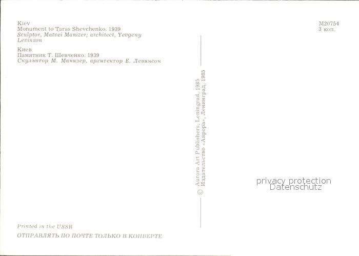 Kiev Kiew Monument to Taras Schevchenko postalisch nicht gelaufen Erhaltung siehe scans