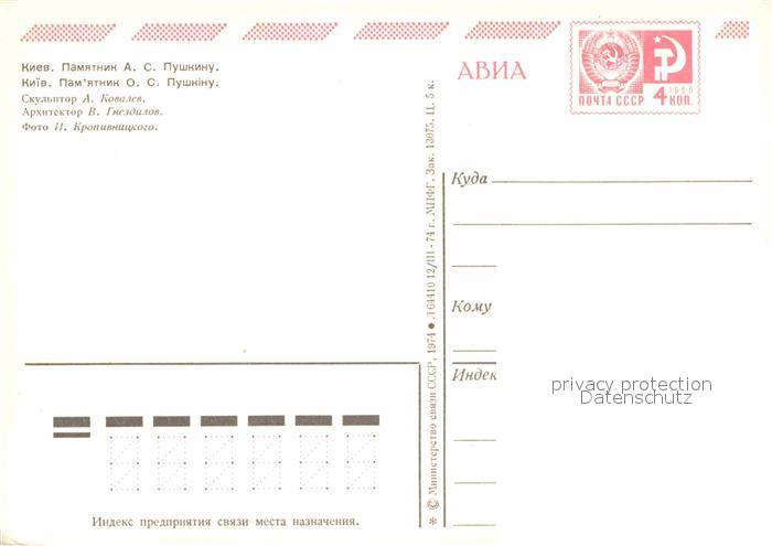 Kiev Kiew Puschkin Denkmal postalisch nicht gelaufen Ganzsache (eingedruckte Briefmarke) Erhaltung siehe scans [NatalD47]