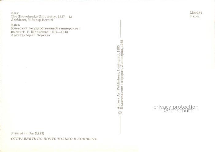 Kiev Kiew Shevchenko University postalisch nicht gelaufen Erhaltung siehe scans