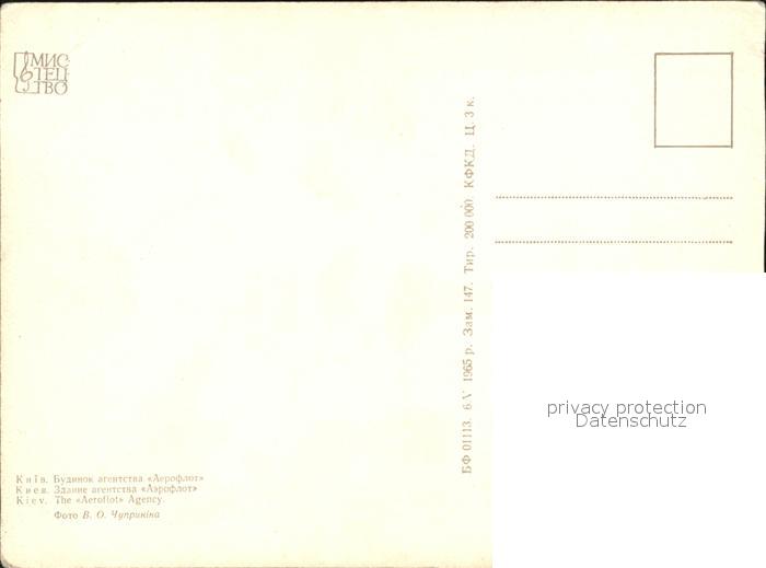 Kiev Kiew The Aeroflot Agency postalisch nicht gelaufen Erhaltung siehe scans