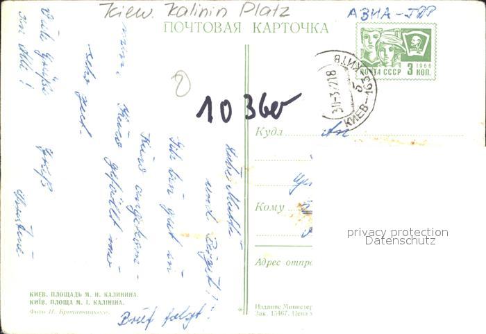 old postcard Kiew Kalinin Platz postalisch gelaufen Erhaltung siehe scans