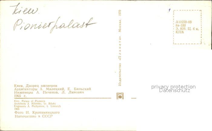 Kiew Pionierspalast postalisch nicht gelaufen Erhaltung siehe scans