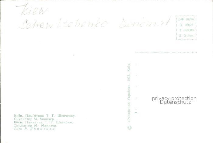 Kiew Schewtschenko Denkmal postalisch nicht gelaufen Erhaltung siehe scans