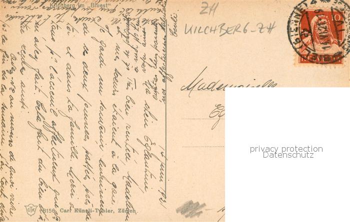 13770310 alte Postkarte Kilchberg ZH im Bluest Baumbluete Kirche postalisch gelaufen Erhaltung siehe scans [FriedD77] KatCode: 11470260890330