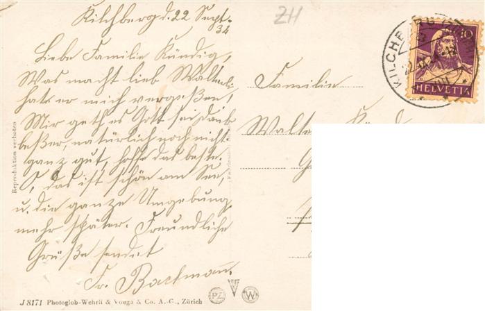 13915905 alte Postkarte Kilchberg ZH Kirche Requiem postalisch gelaufen Erhaltung siehe scans [FriedD77] KatCode: 11470260890330