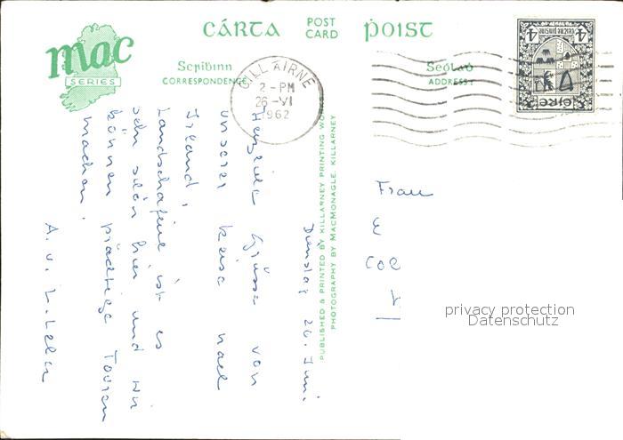old postcard Killarney Kerry Historic Ross Castle on Lakes of Killarney postalisch gelaufen Erhaltung siehe scans