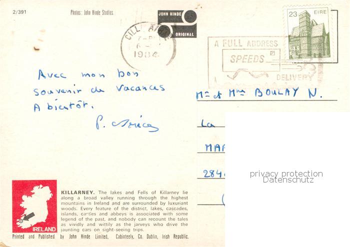 old postcard Killarney Kerry Ireland Landschaftspanorama Golfplatz postalisch gelaufen Erhaltung siehe scans [FriedD77]