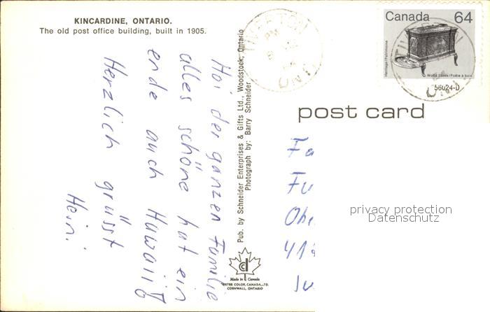 old postcard Kincardine Old Post Office Building built in 1905 Flag postalisch gelaufen
