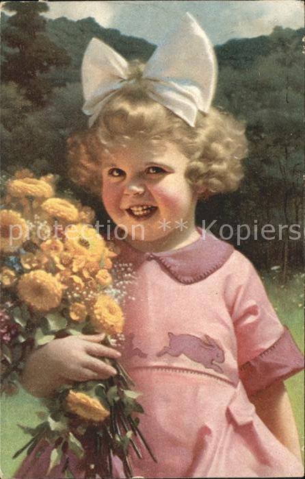 alte Postkarte Kinder Child Enfants Blumen Schleife postalisch gelaufen Erhaltung siehe scans