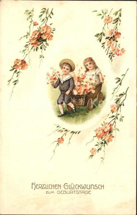 11745884 Kinder Child Enfants Geburtstag Blumen Holzwagen Litho KatCode 22220000000800