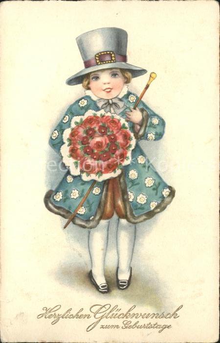 Kinder Child Enfants Rosen Hutmode Glueckwunsch Geburtstag