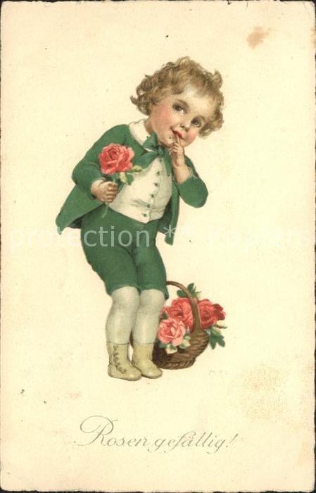 alte Postkarte Kinder Child Enfants Rosen Korb Litho postalisch gelaufen Erhaltung siehe scans