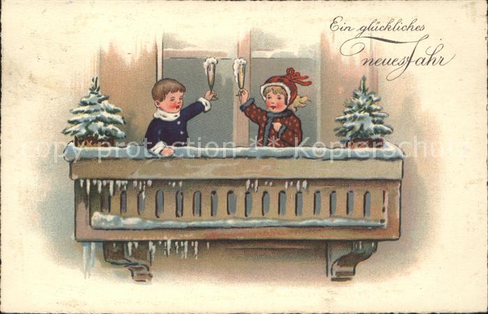 alte Postkarte Kinder Child Enfants Sekt Neujahr postalisch gelaufen Erhaltung siehe scans