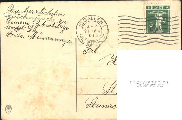 11745888 Kinder Child Enfants Veilchen Weidenkätzchen Holzkarre Geburtstag Litho KatCode 22220000000800