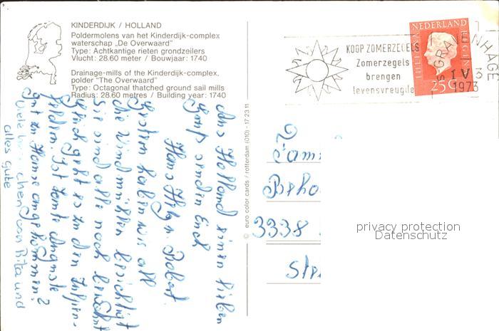 old postcard Kinderdijk Poldermolens Windmuehlen postalisch gelaufen Erhaltung siehe scans