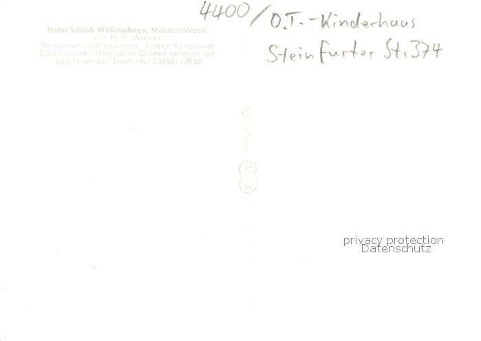 73700892 Kinderhaus Hotel Schloss Wilkinghege Restaurant postalisch nicht gelaufen Erhaltung siehe scans [FriedD77] KatCode: 11110005515000