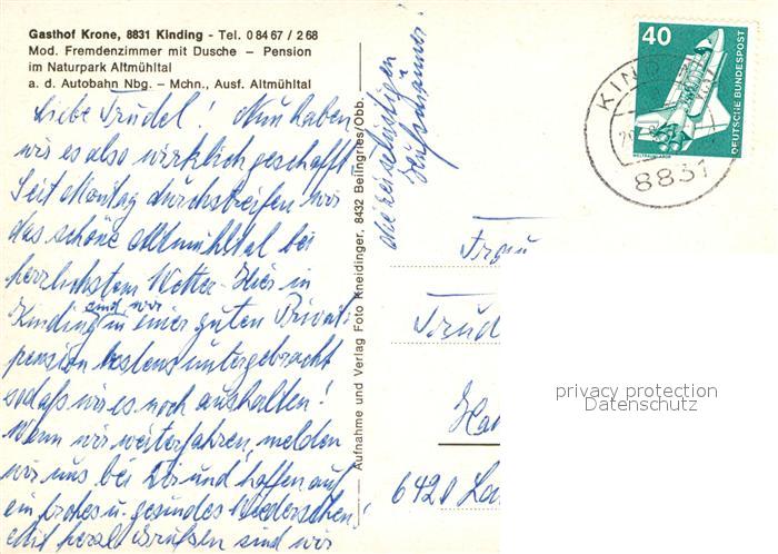 73020500 alte Postkarte Kinding Gasthof Krone postalisch gelaufen Erhaltung siehe scans [NatalD47] KatCode: 11110009176137